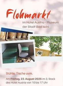 Das Hotel Austria - Museum der Stadt Bad Ischl gibt verschiedene gebrauchte Ausstattungsgegenstände (Vitrinen, Tische, Stühle), Ausstellungsmaterialien, Bücher und vieles mehr ab.