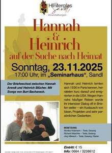 Musikalische Lesung: Hannah und Heinrich auf der Suche nach Heimat | Hinterglasmuseum Sandl
