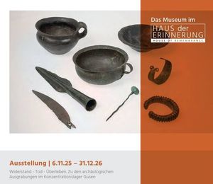 Die Ausstellung Widerstand - Tod - Überleben. Zu den archäologischen Ausgrabungen im Konzentrationslager Gusen, die vom 6. November 2025 bis zum 31. Dezember 2026 im Museum im Haus der Erinnerung in St. Georgen/Gusen gezeigt wird, führt Besuchende von der Spätbronzezeit, ins Mittelalter und über die NS-Zeit ins Heute.